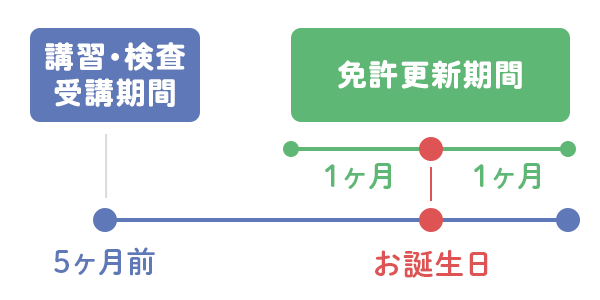 免許証の有効期間満了日の6か月前から受講できます。