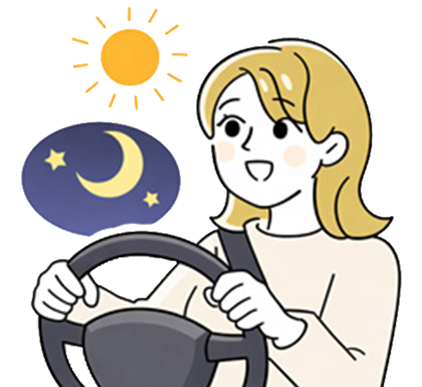 「空いた時間にサッと通える」から、無理なく続けられる!当所では、地域の中でも特に幅広い教習時間帯を設定しています。